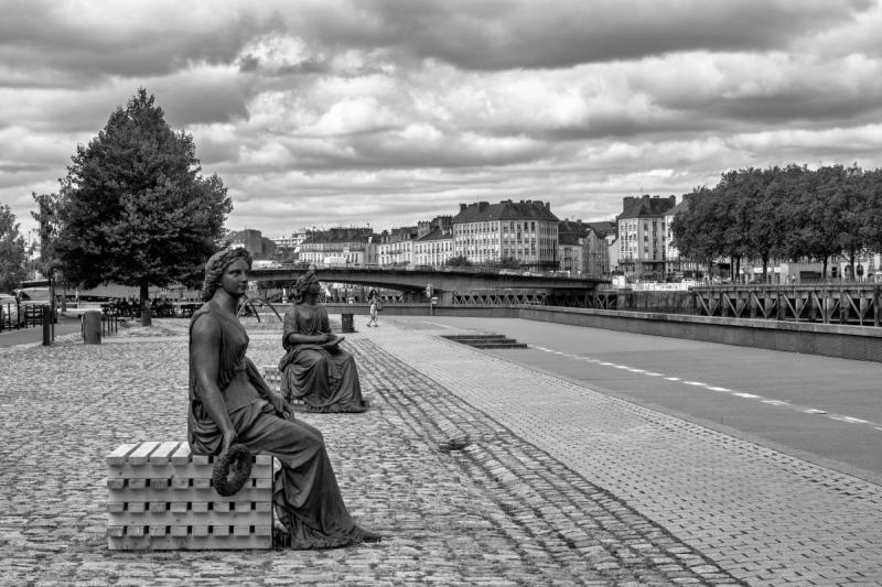 Photo du jour (27 juillet 2023) Voyage à Nantes 2023, statues en bord de Loire, face au palais de justice